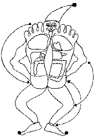 feet mirroring the left and right sides of the body. Wherever there is illness